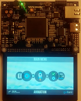 With its 400MHz ARM-Cortex-A9 Core, up to 10MB on-chip SRAM and integrated display controller the RZ/A is the ideal platform for the Guiliani HMI framework allowing to exploit Guiliani’s powerful HMI capabilities.